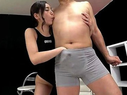 競泳水着のお姉さんがロッカールームで男を誘惑